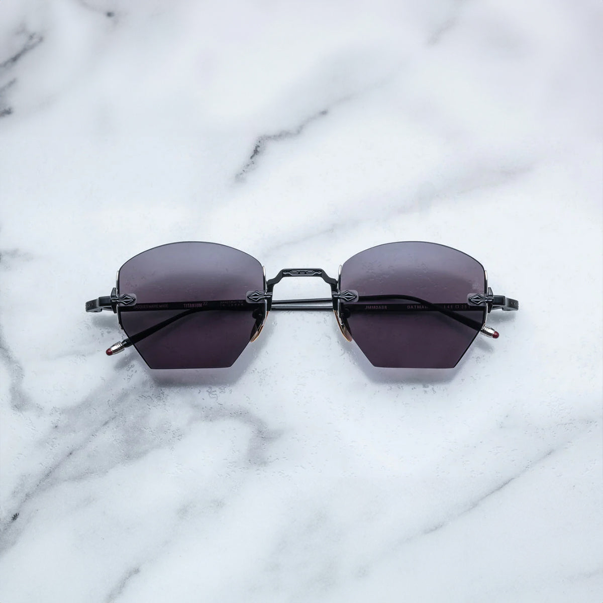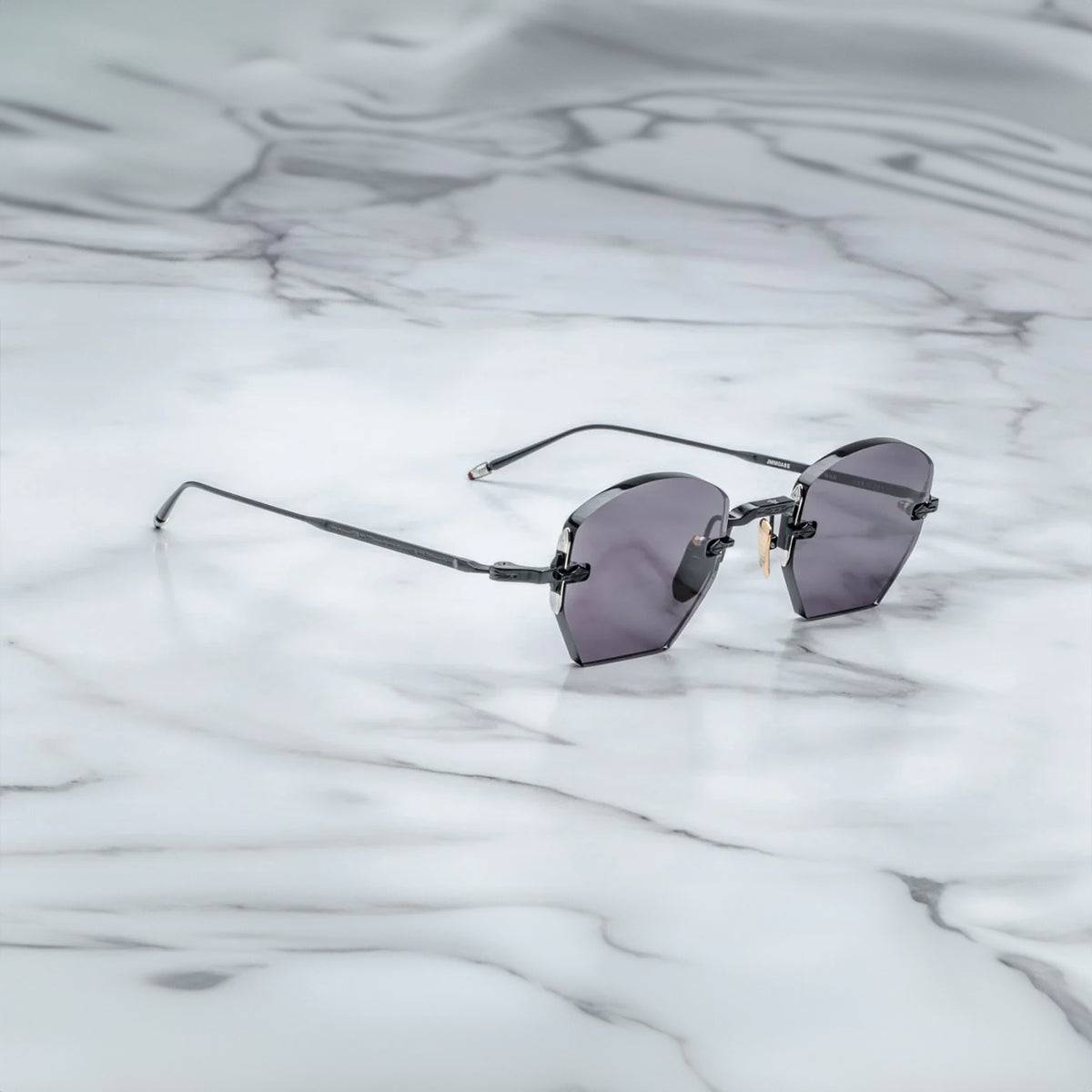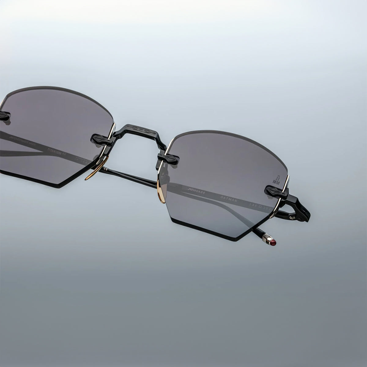 - Unique hexagonal glasses feature contrasting angles and hand-painted tailfin temples; a new addition to JMM's rimless range