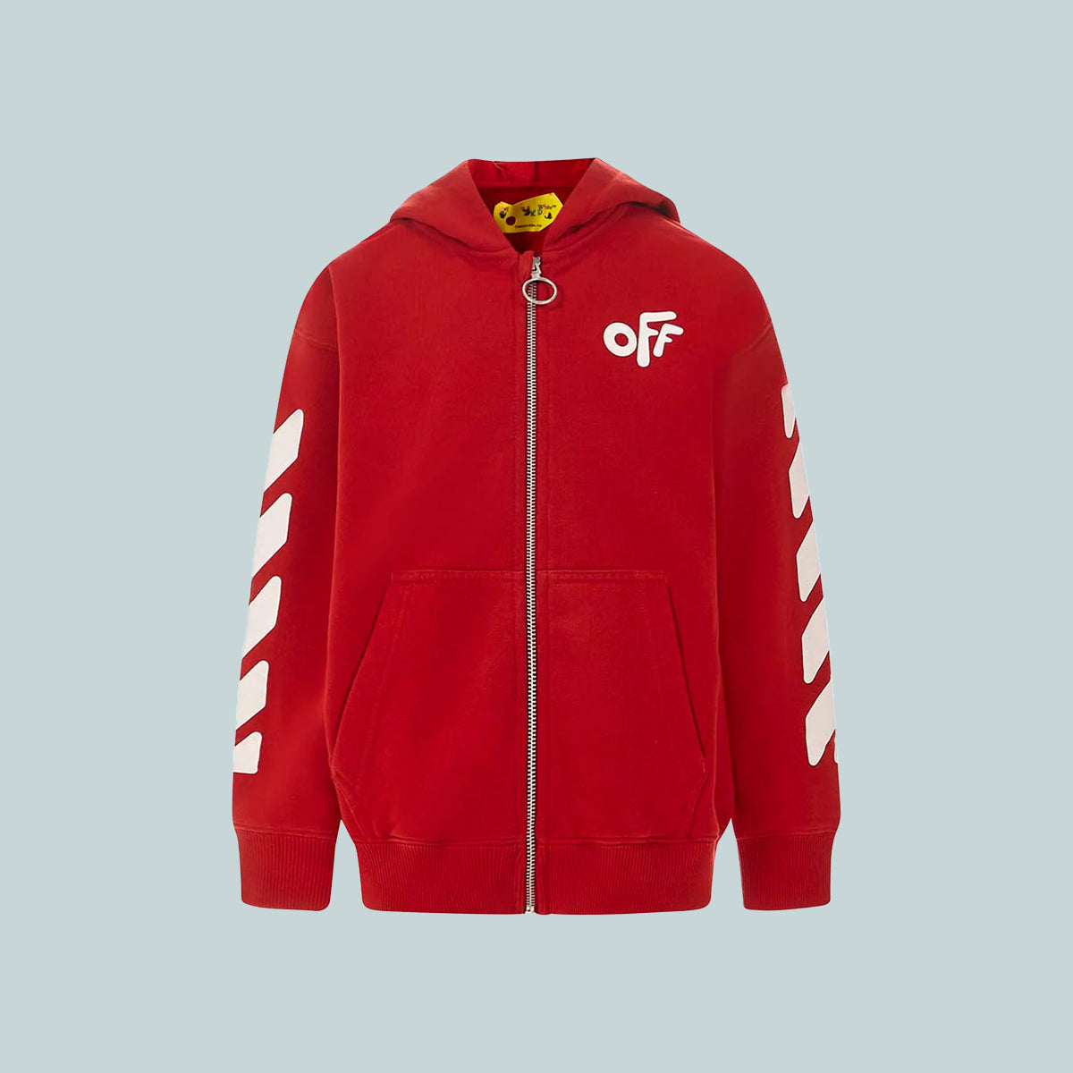 Off-White ventures into kidswear with its first-ever collection, featuring everything from tee shirts to outerwear.