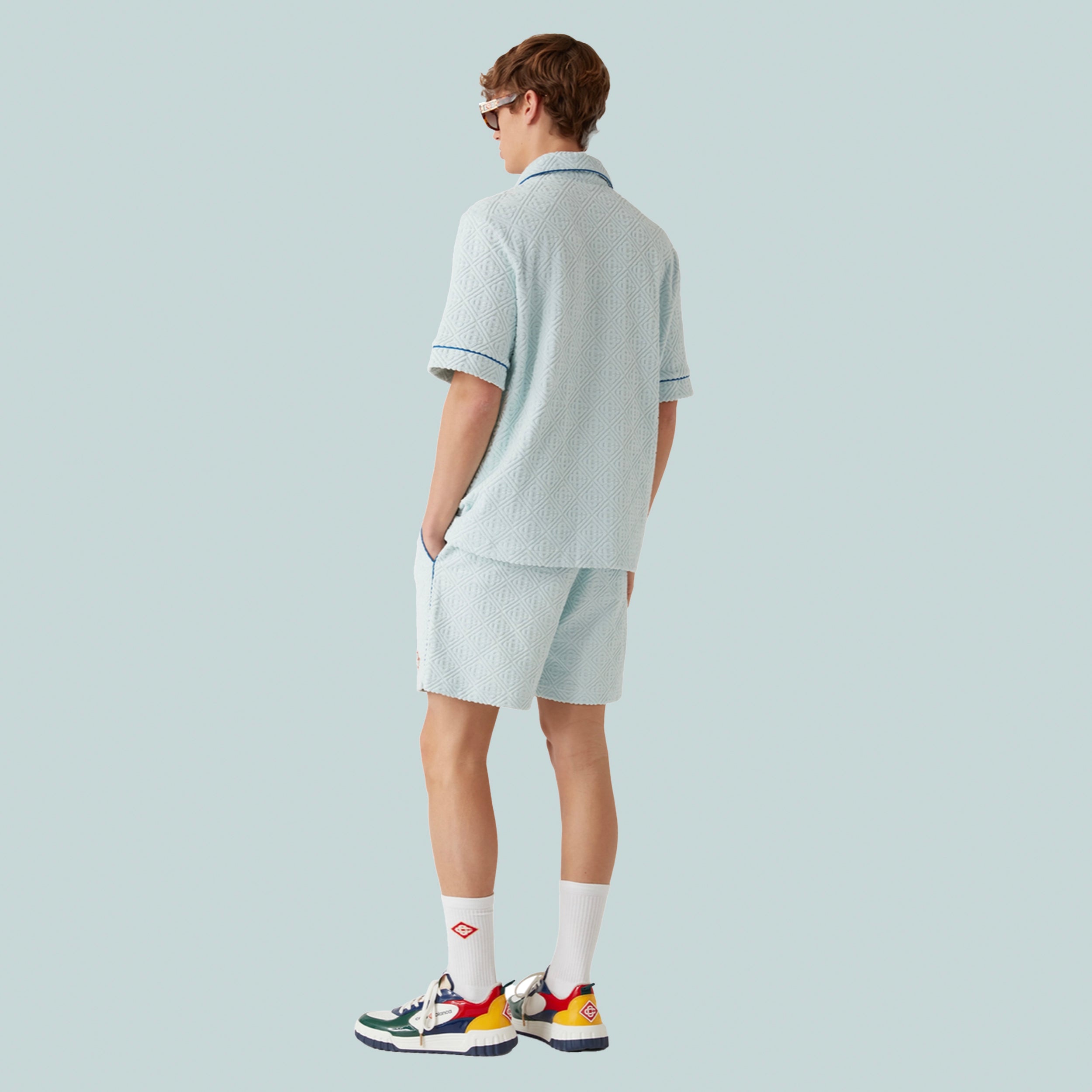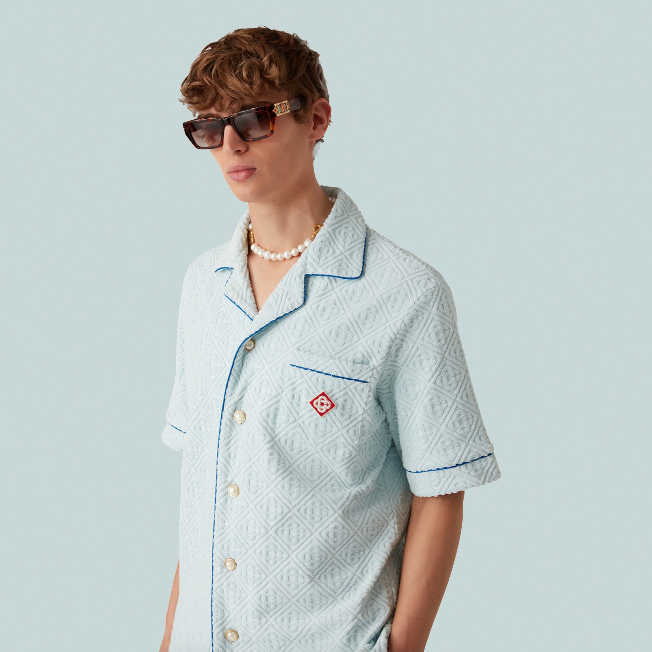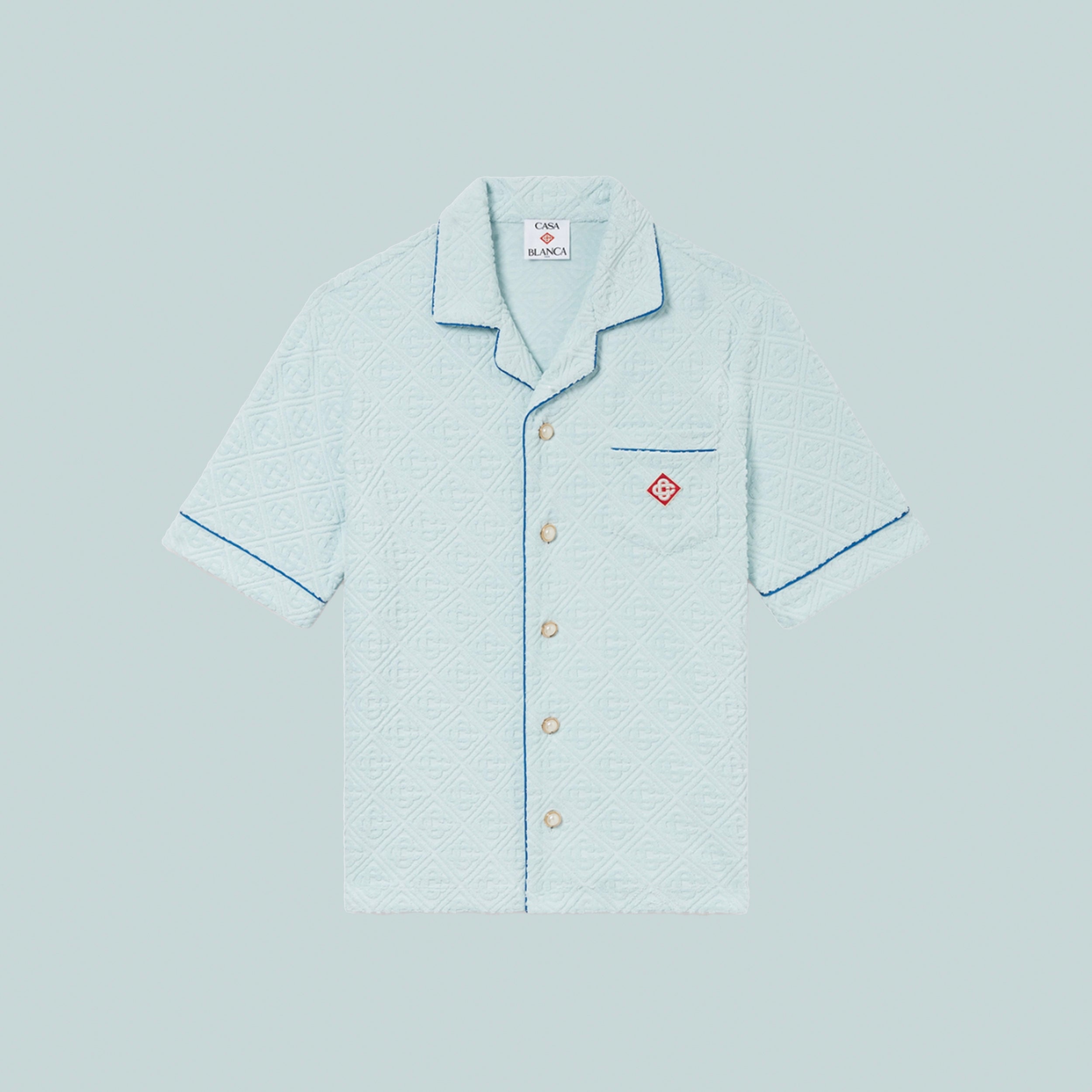 The monogram towelling shirt is a short-sleeve design crafted from a monogram cotton blend towelling fabric and features the house's signature diamond logo. Completed with a breast pocket, contrast piping, gold rim pearl buttons and a Cuban collar.