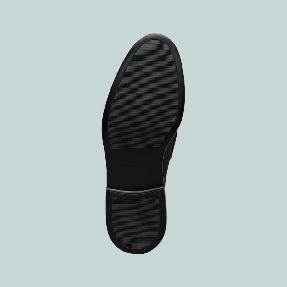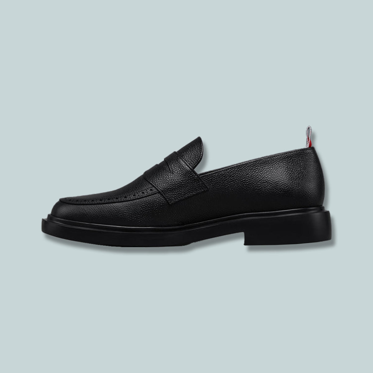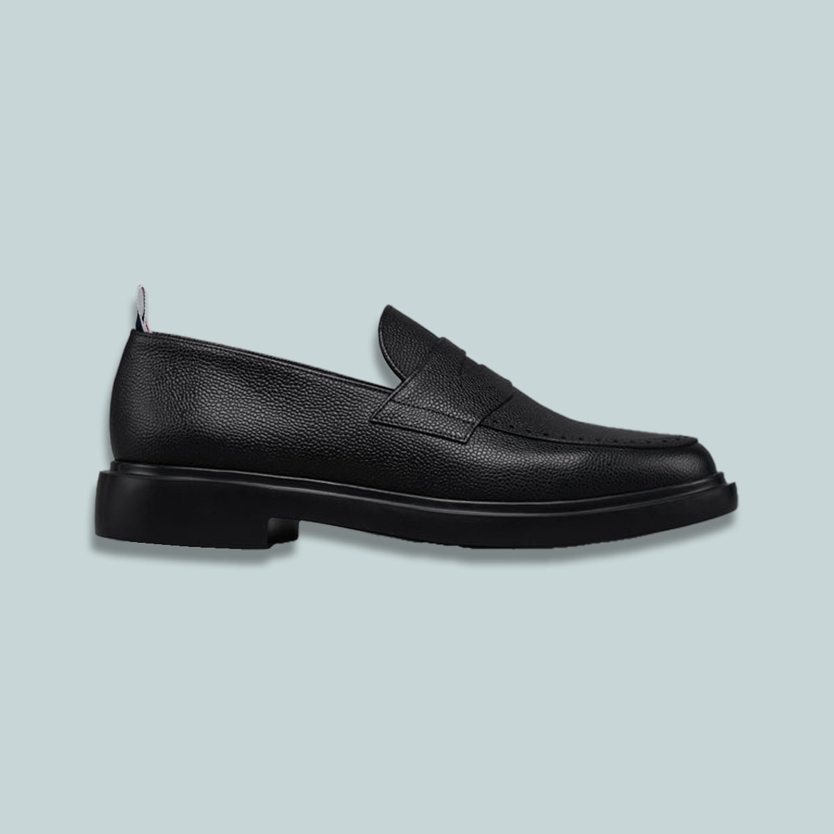 Pebble Grain Lightweight Rubber Sole Penny Loafers Black