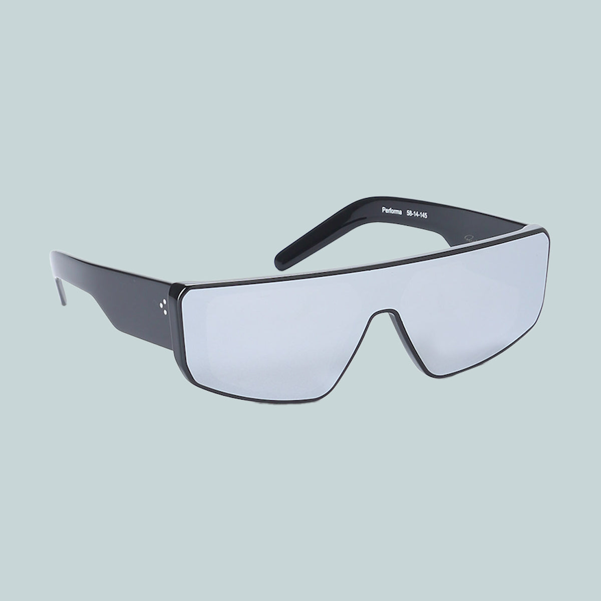 A classic shield frame infused with the allure of science fiction: Performa summons the sleek minimalism of the future. Carefully crafted with a sleek 2-base lens shield, the Performa features a host of carefully considered details. A slender acetate rim extends around the exterior of the frame for added strength and the frame is fitted with a five-barrel hinge.