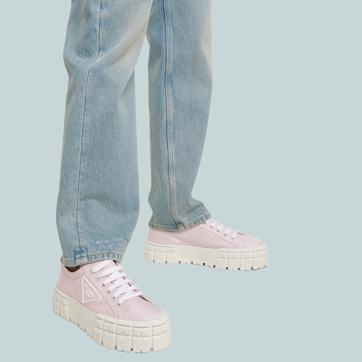 An innovative design with a retro soul defines these Double Wheel sneakers. A chunky textured sole is combined with the most classic gabardine upper featuring the rubber triangle logo.