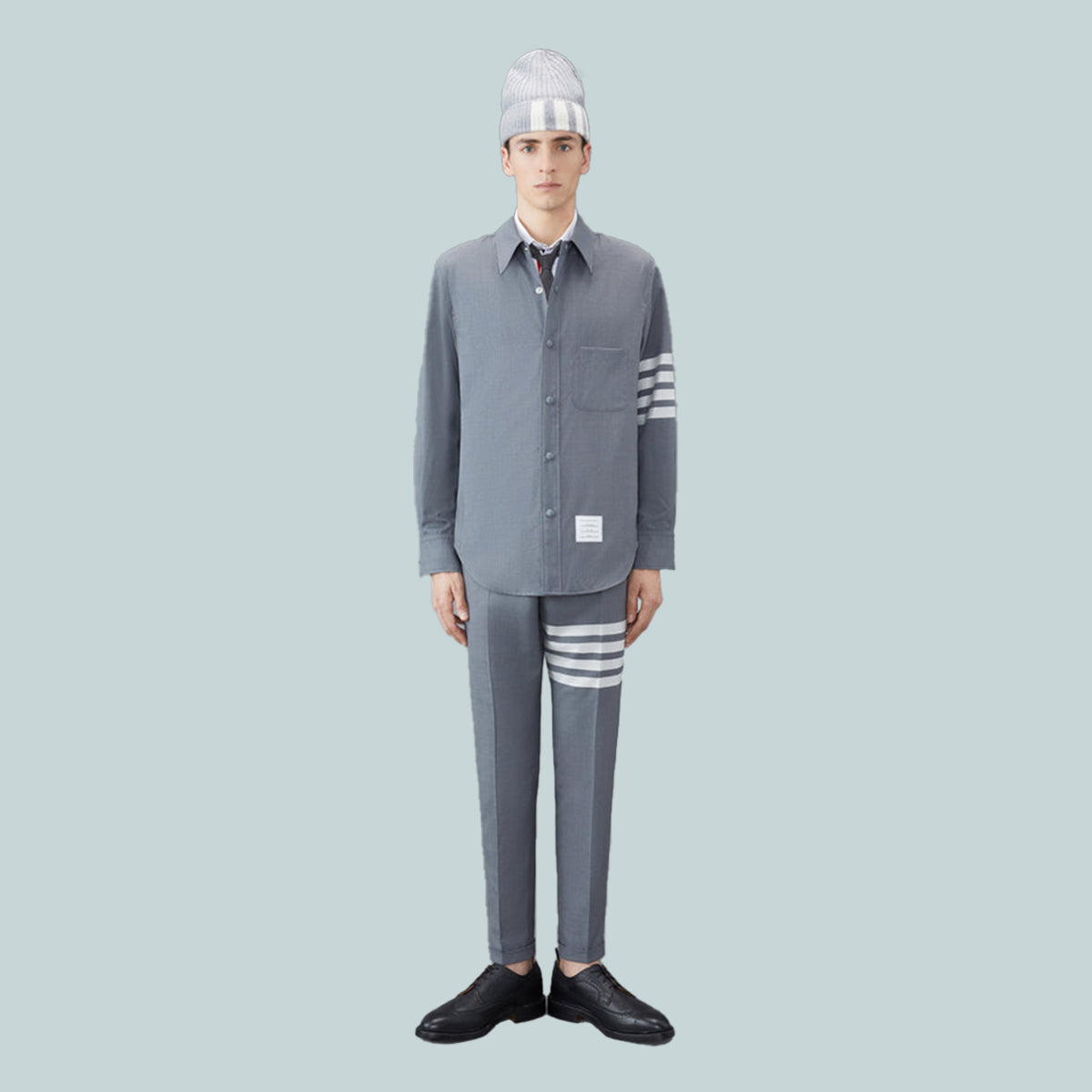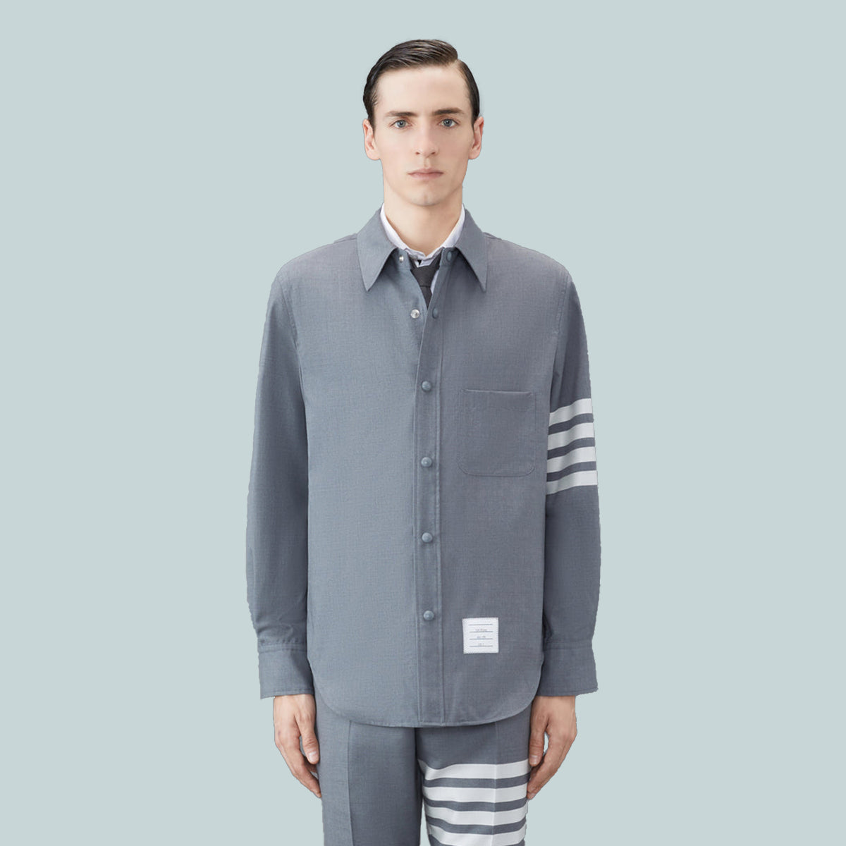 Plain Weave 4-Bar Shirt Jacket Grey