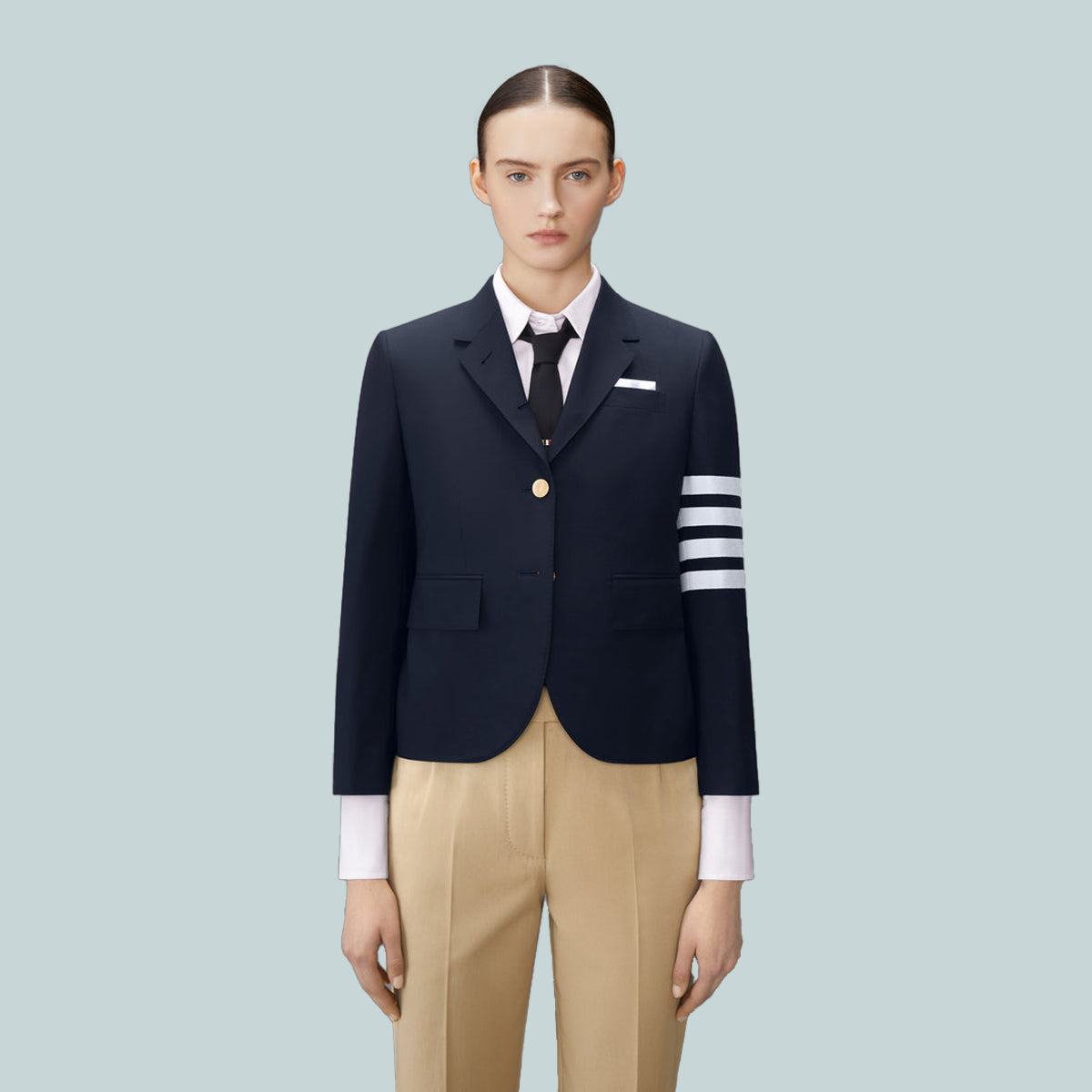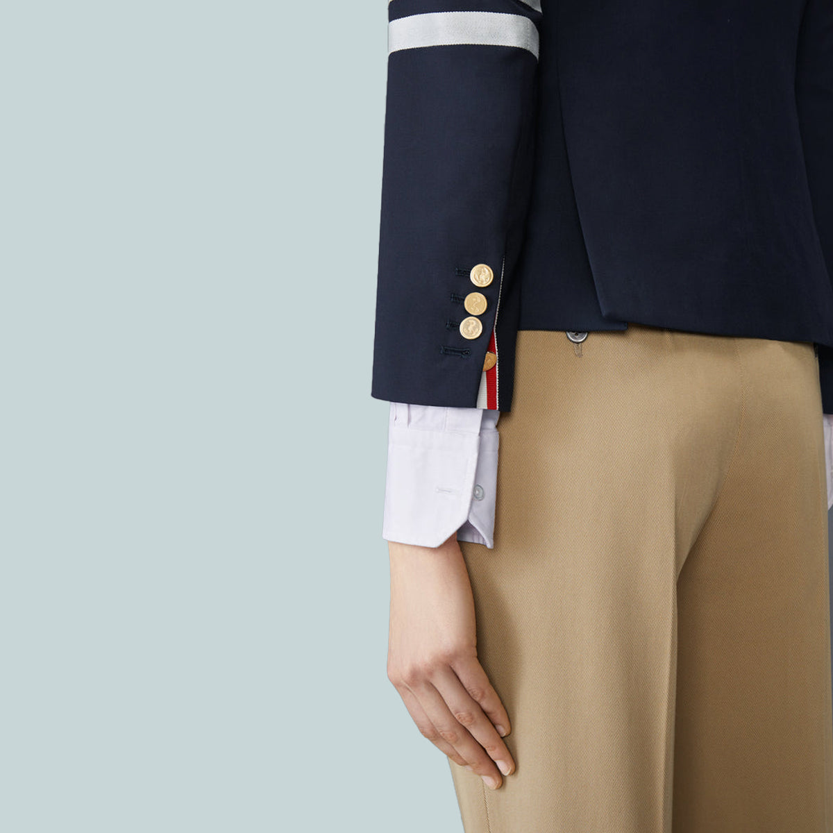 Buttoned cuffs with signature striped grosgrain trim