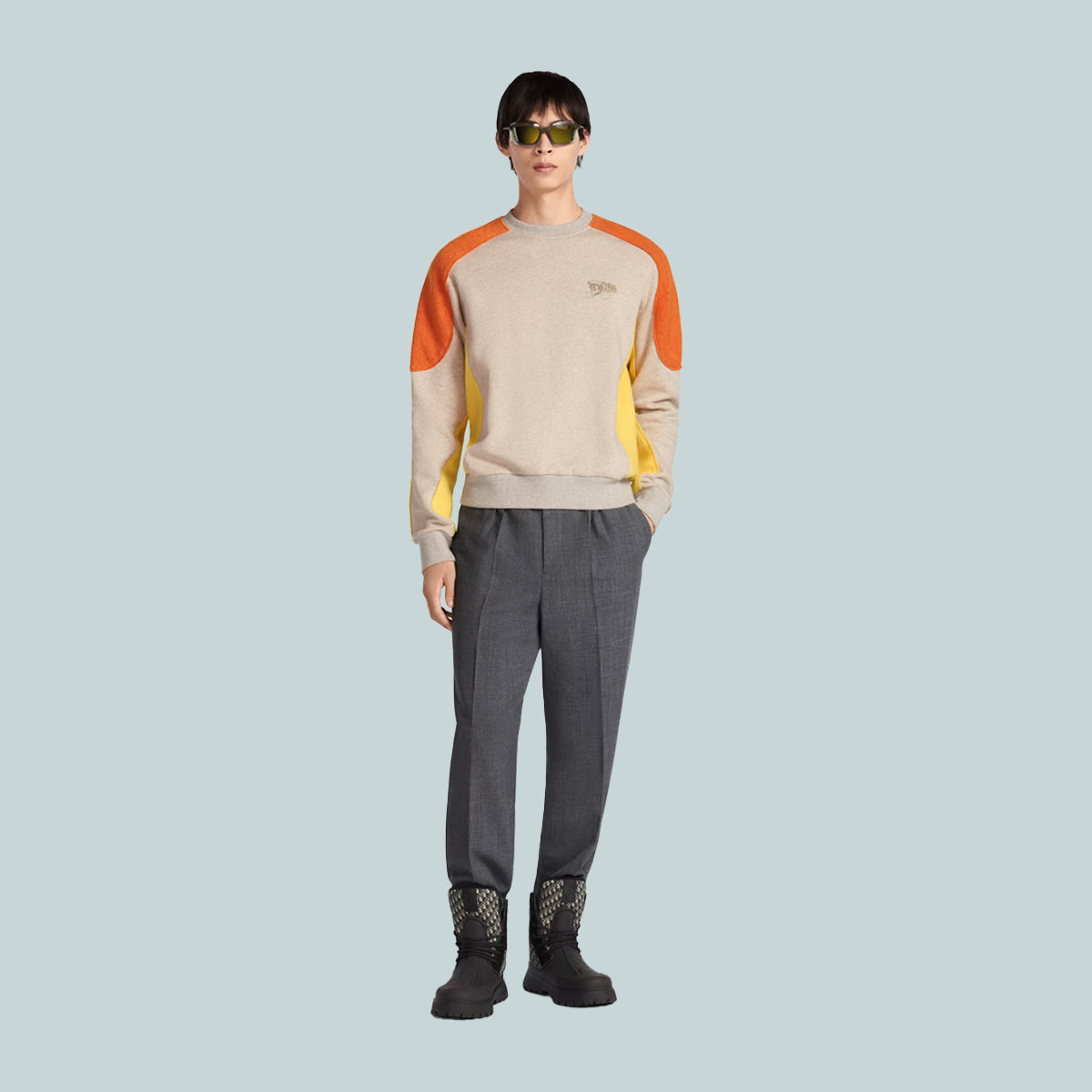 Tailoring is at the heart of House heritage and is the very essence of the Dior ateliers' savoir-faire. Unveiled at the Dior Men Fall 2023 fashion show, the pleated pants are revisited by Dior Men Creative Director, Kim Jones, inspired by a 1956 House design. Crafted in anthracite gray virgin wool, it is characterized by couture-inspired inverted pleats. Modern and casual, the pants will complete the matching top.