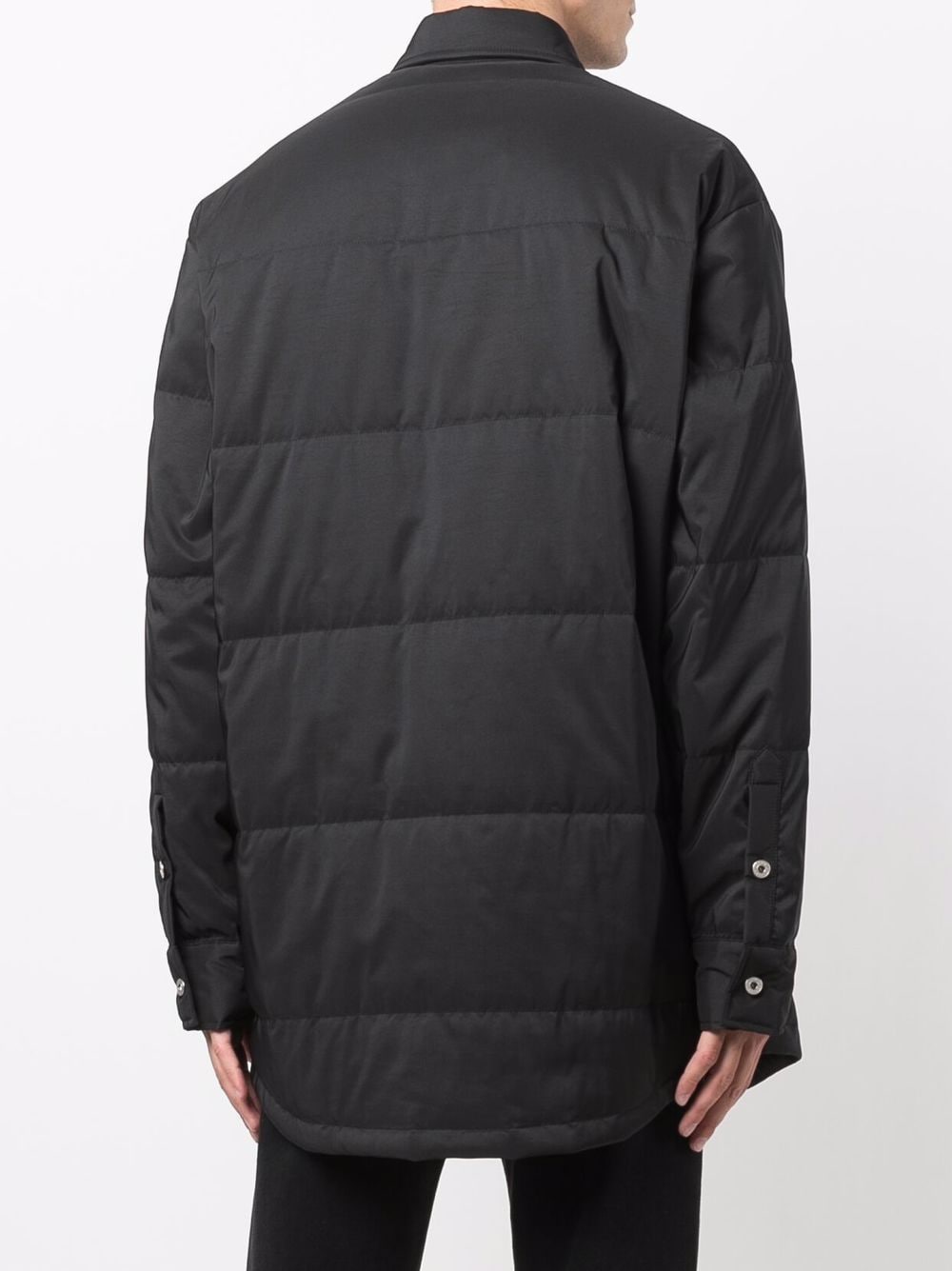 Quilted nylon shirt in black from Heron Preston. The padded design and two large chest flap pockets give this outerpiece from Heron Preston a contemporary casual wear look. Front button down closure.