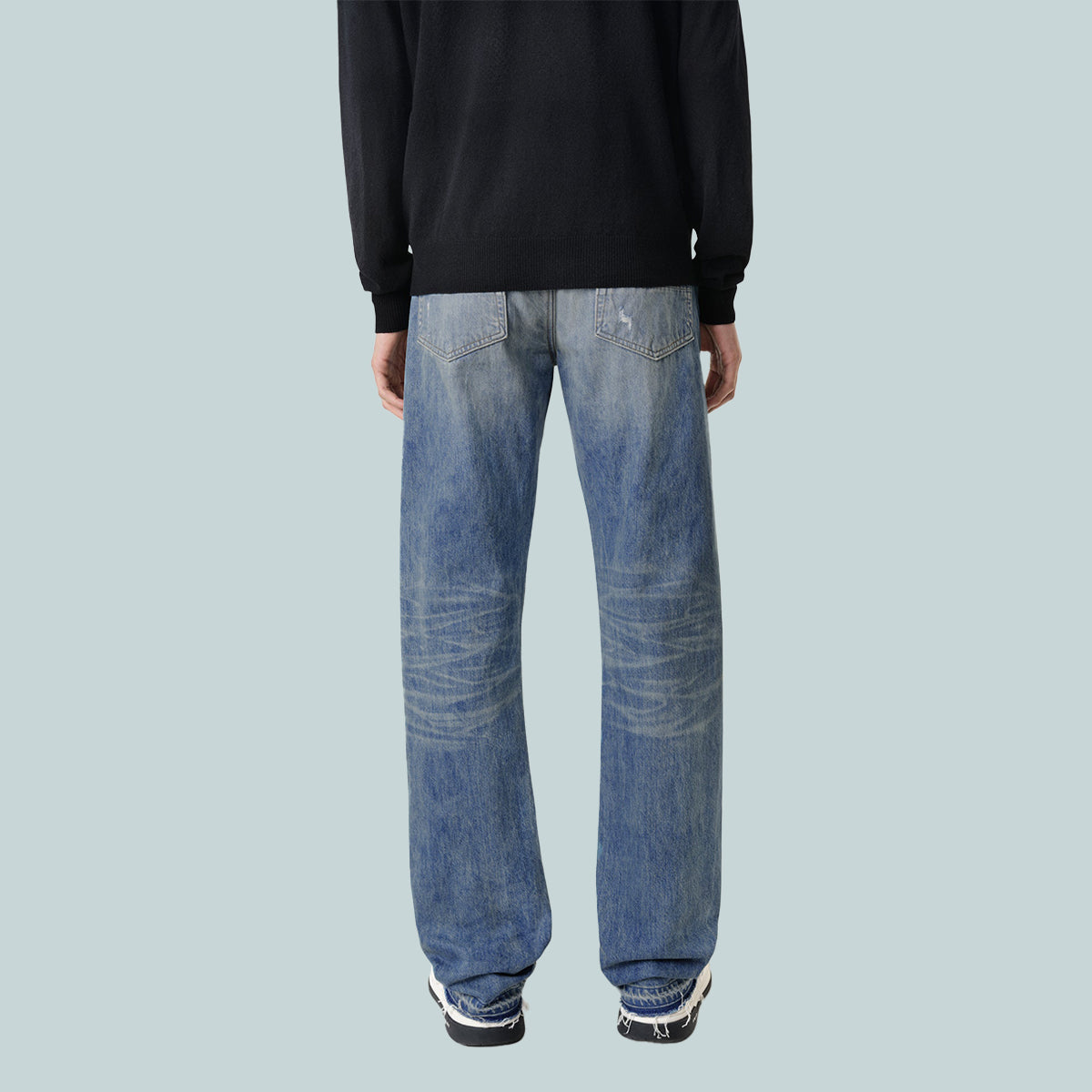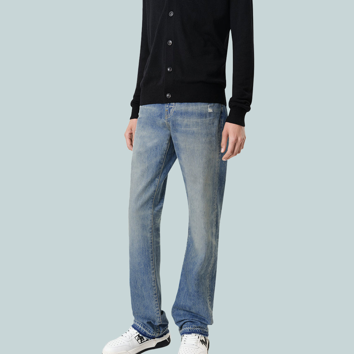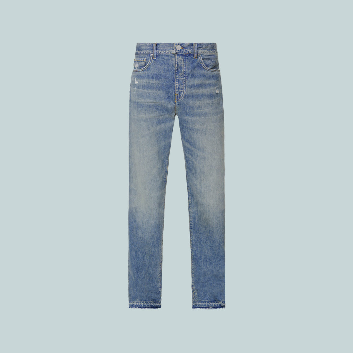 Continuing a revival of signature pieces from the house's archive, the hem of these jeans are released after washing in the style of AMIRI's debut season denim. DIY in sensibility, these jeans are crafted with classic five-pocket construction and are specially washed for a well-worn vintage feel. These jeans are envisioned for everyday wear, pairing effortlessly with house tee and knitwear offerings.