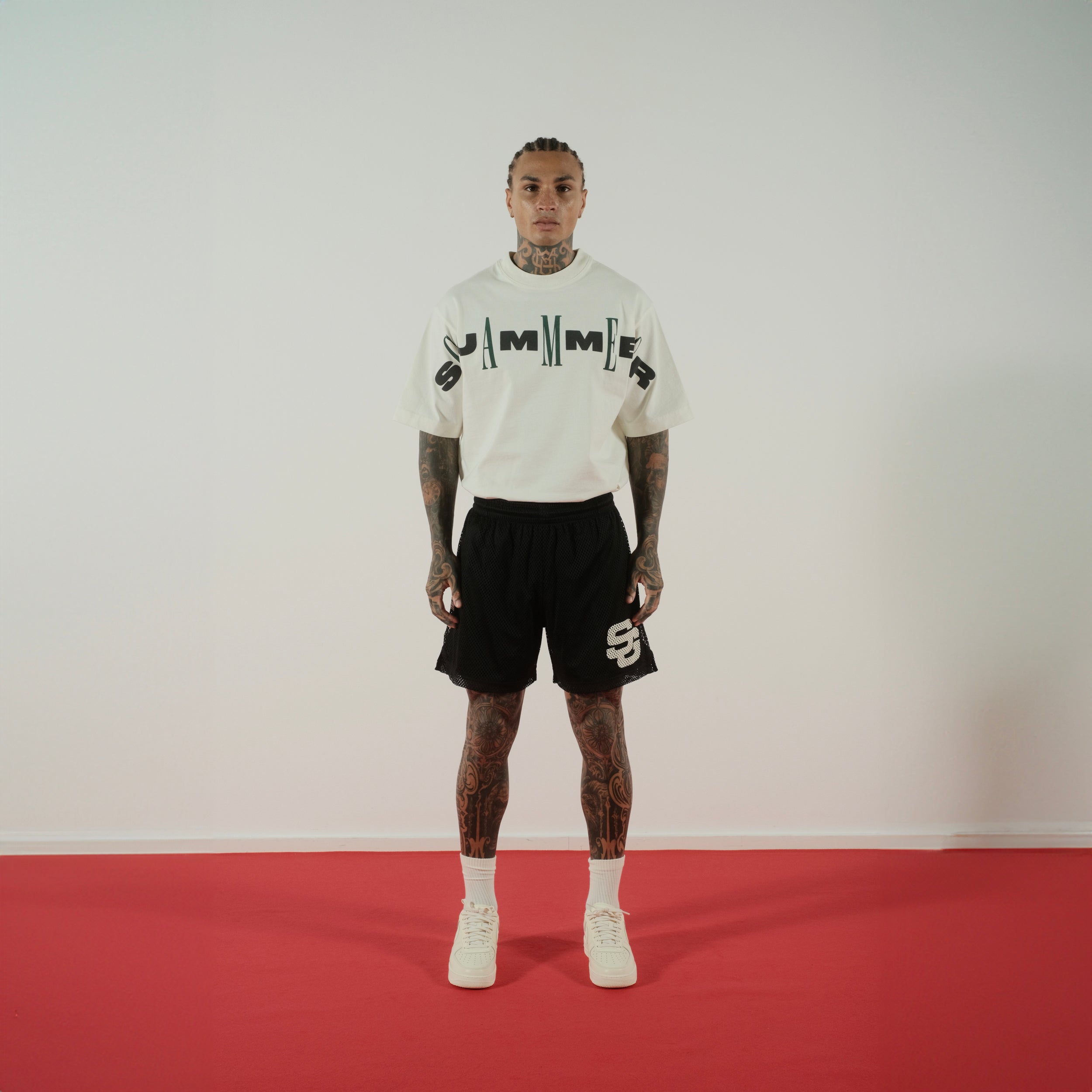 Comfy basketball shorts made out of 100% polyurethane with screen print and brand tag.