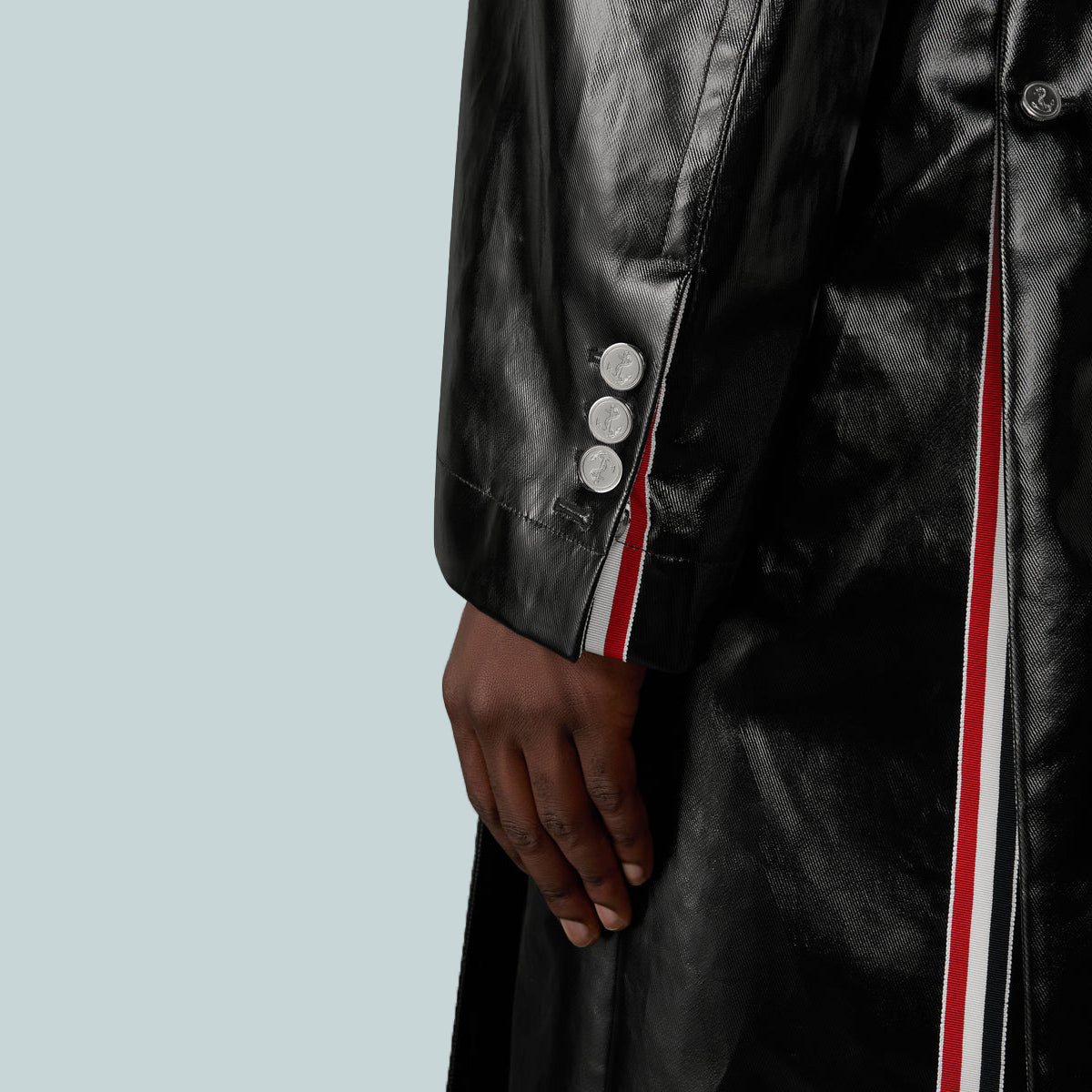 Buttoned cuffs with RWB grosgrain trim