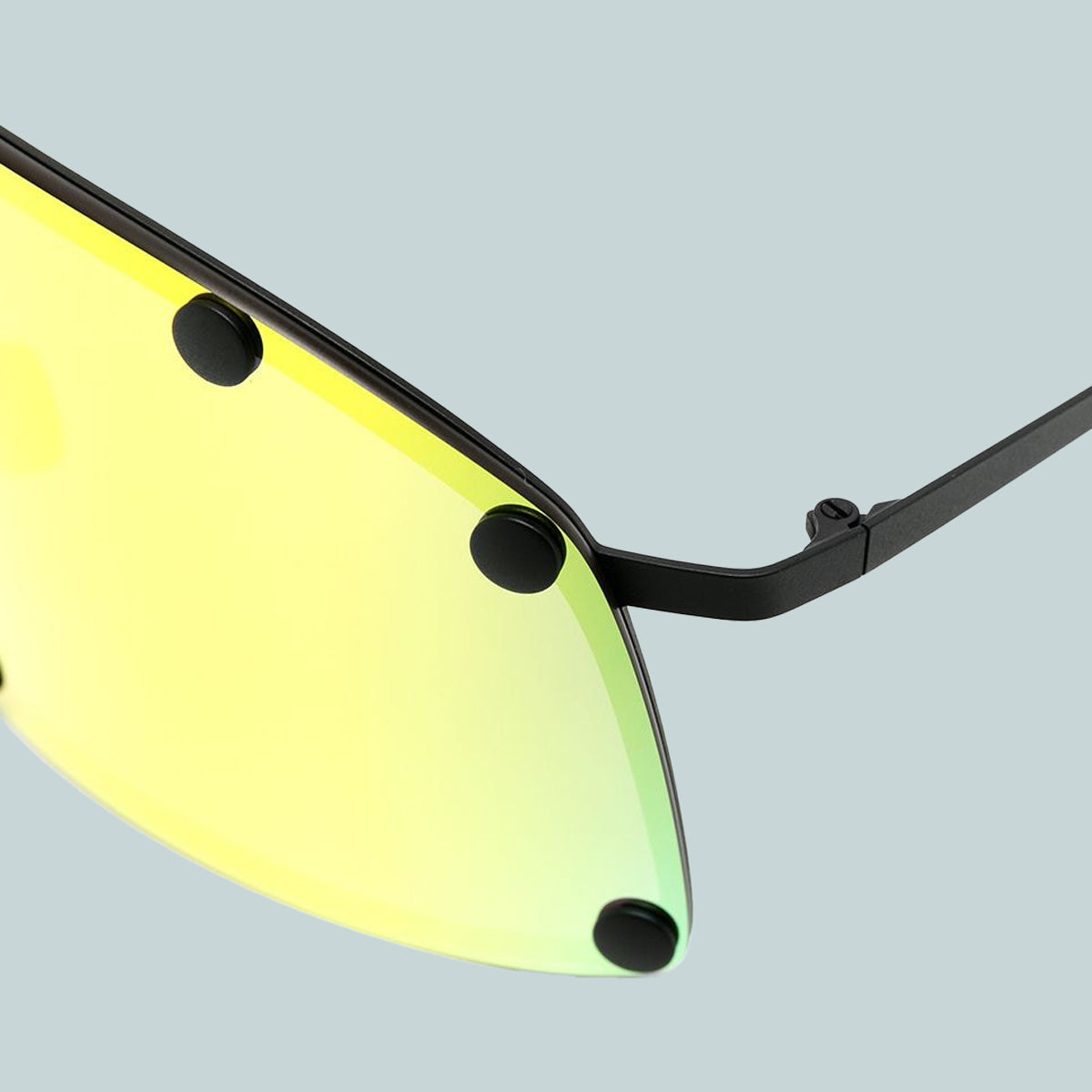 The shielding is a sleek update of the oversized original shield with a hint of 70’s space alien porn. The shielding is laser-etched and inlaid with metal studs, while a slender hypoallergenic surgical stainless-steel rim extends around the frame’s oversized exterior for added strength. Temples are delicately bifurcated and anchored directly to the lens shield and tipped in luxurious Japanese acetate, ensuring the perfect balance of visionary design and unparalleled comfort. Adjustable rubber nose pads. Unisex.