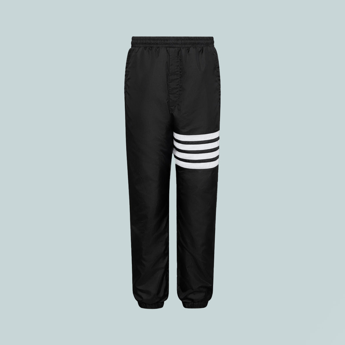 These track pants reinterpret athletic codes through the lens of engineered luxury. Developed in a new lightweight and weather-resistant shiny ripstop, it balances structure with technical precision.