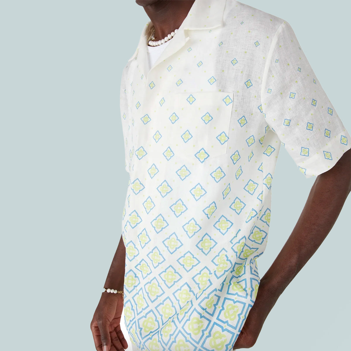 The Degrade monogram short-sleeve linen shirt is a refined collared design. Completed with a Cuban-style collar, button closure with interlocking CC logo corozo buttons, and a breast pocket.