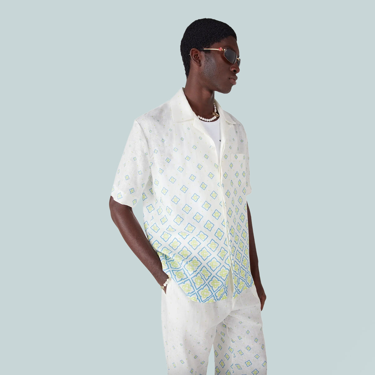 Short Sleeve Linen Shirt Degrade Monogram