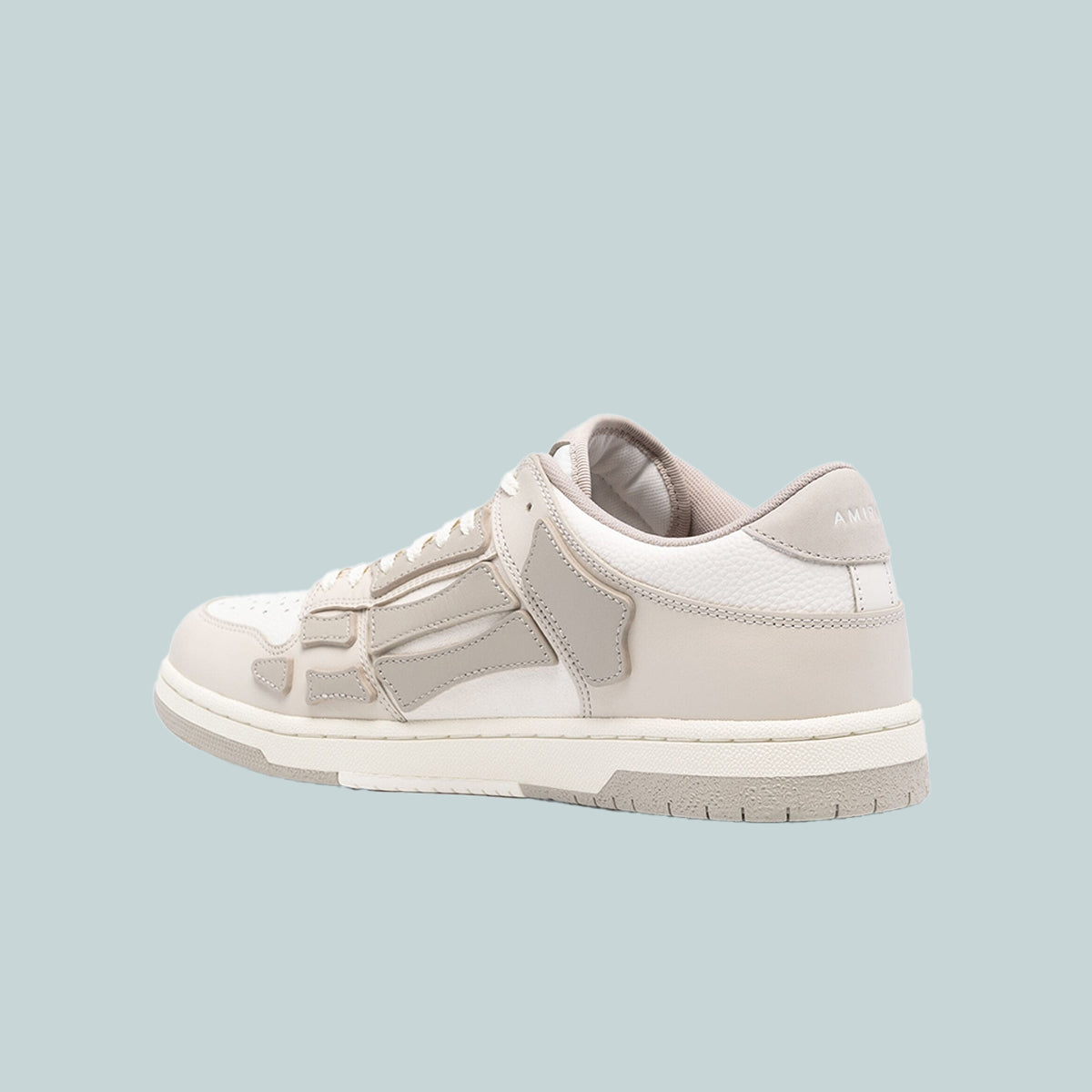 A distinctive house icon, the skel top series transposes sewn skeleton leather appliqués on a timeless basketball silhouette. crafted in leather with a two-tone rubber sole, the shoe is accented with perforated detailing, topstitching and signature graphics.