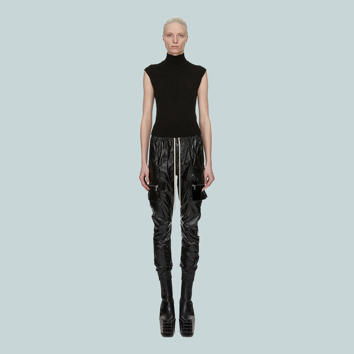 rick owens ss25 hollywood l turtle in black megarib cotton knit