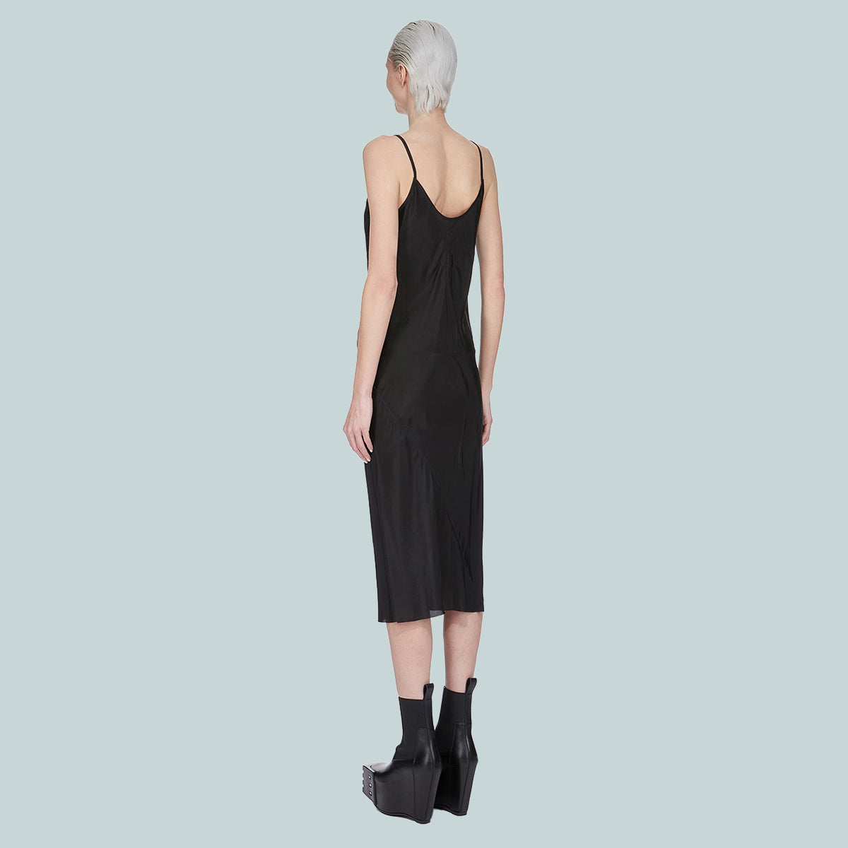 rick owens ss25 hollywood slip dress in black cupro japonette