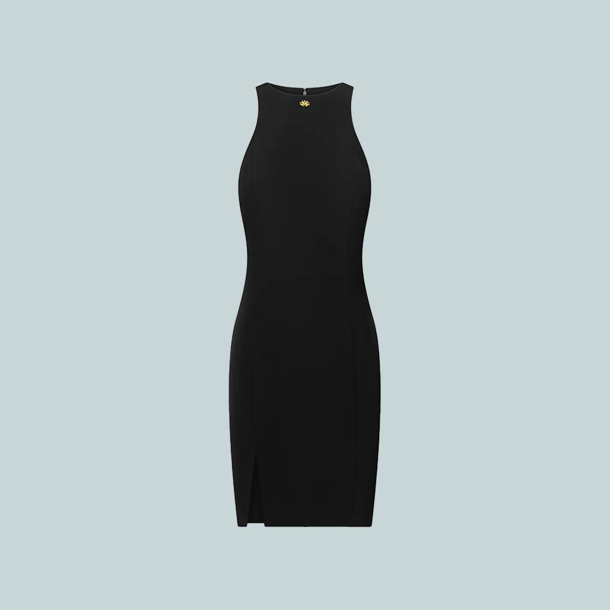 The Pre-Fall 2025 womenswear collection continues to explore house signature motifs in streamlined silhouettes. The Slit Mini Dress features MA icon hardware and is finished with invisible zip back closure.