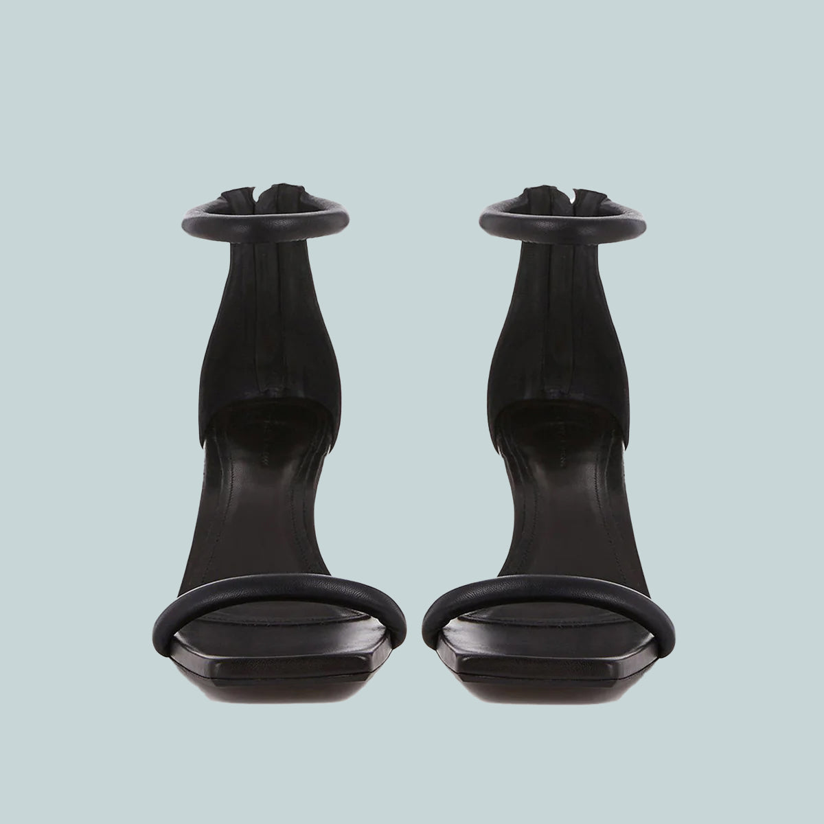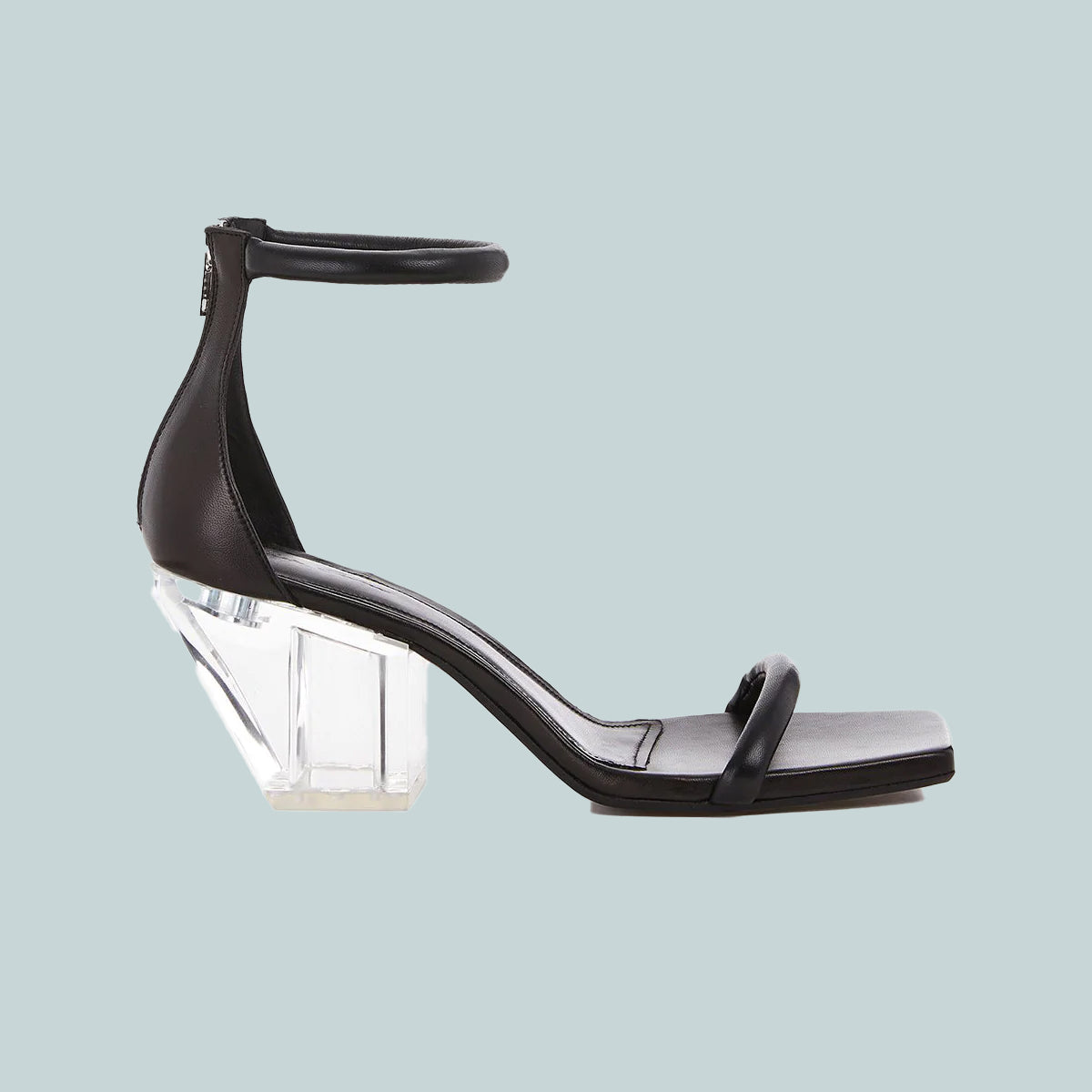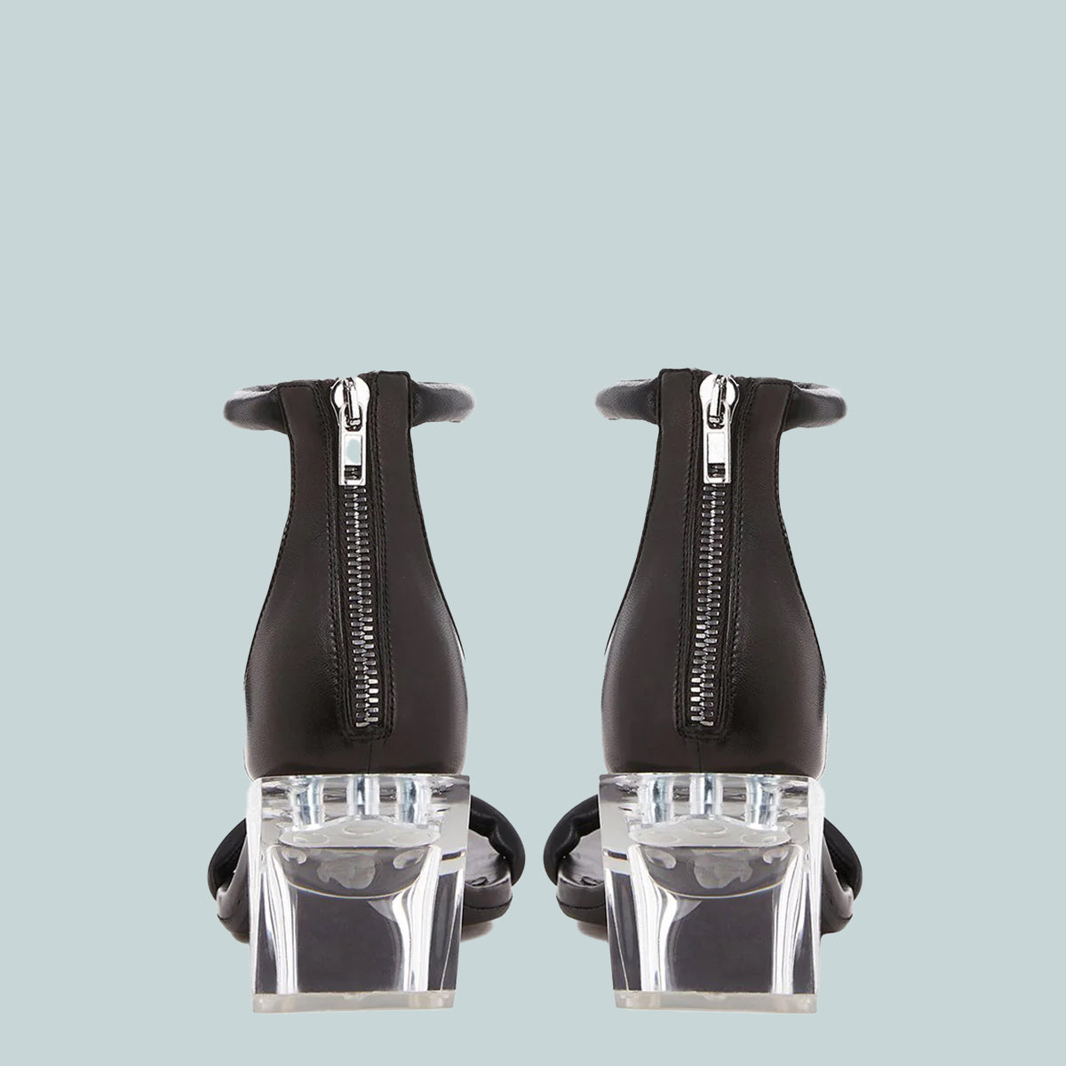 Sliver sandal in black leather with clear block heel from Rick Owens.