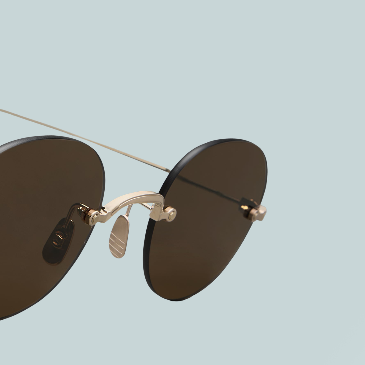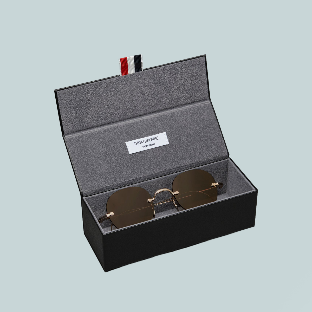 A crisp, minimalist frame made to withstand daily wear. Drawing inspiration from mid-century aesthetics, this silhouette is crafted from ultra-thin, lightweight, 12k gold-plated titanium, engineered to withstand drops and impact. Japanese acetate lenses offer stunning optical clarity and 100% UVA/UVB protection, while ergonomic nose pads provide a comfortable, pressure-free fit. Finished with Thom’s signature red, white, and blue trim at the temple tips and 4-bar detailing engraved at the nose pads, these frames are sleek and understated—perfect for effortless, everyday wear.