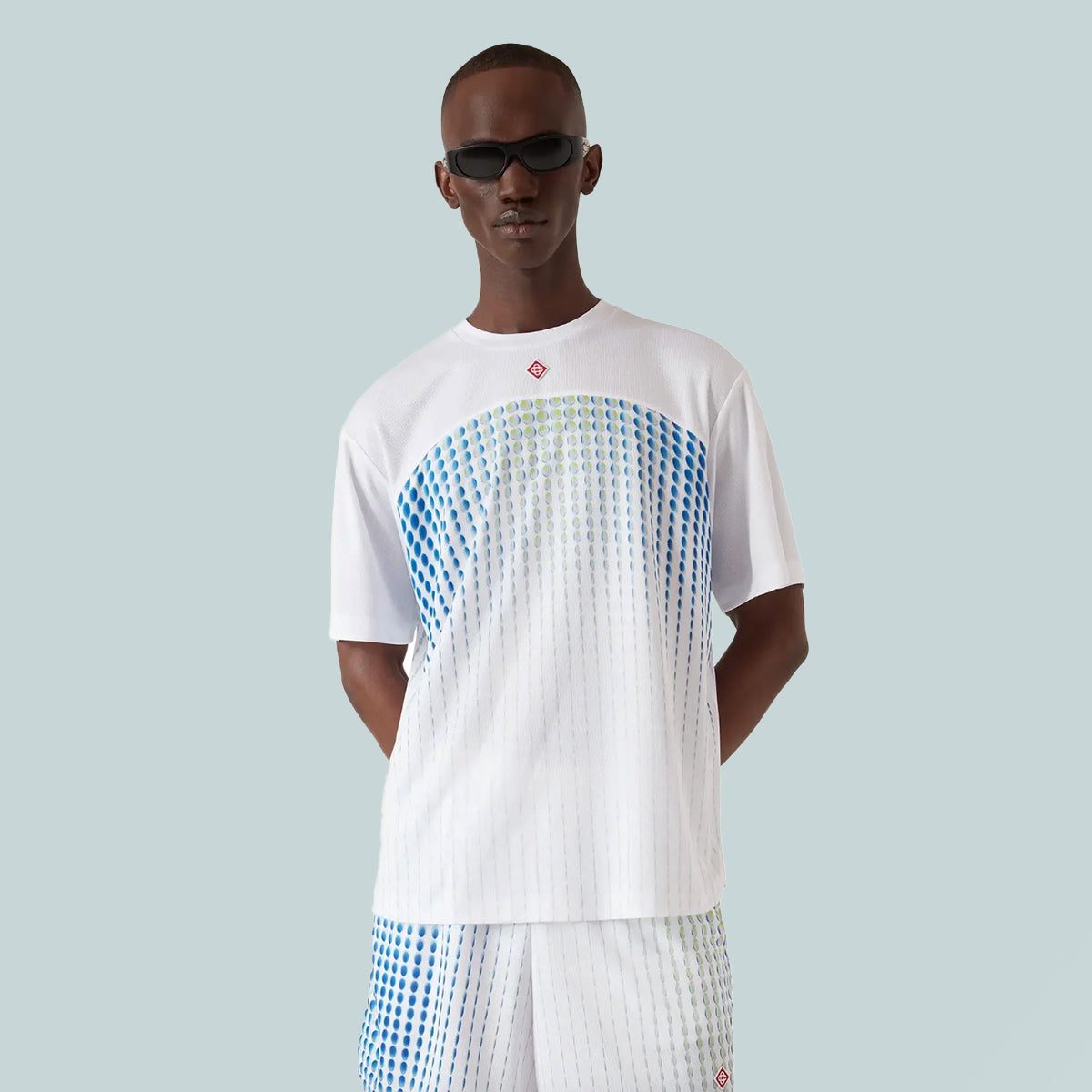 The Tennis Tech short-sleeve t-shirt is a printed design crafted from heavy birdseye mesh featuring a shoulder panel. Completed with a crew neck and a relaxed silhouette.