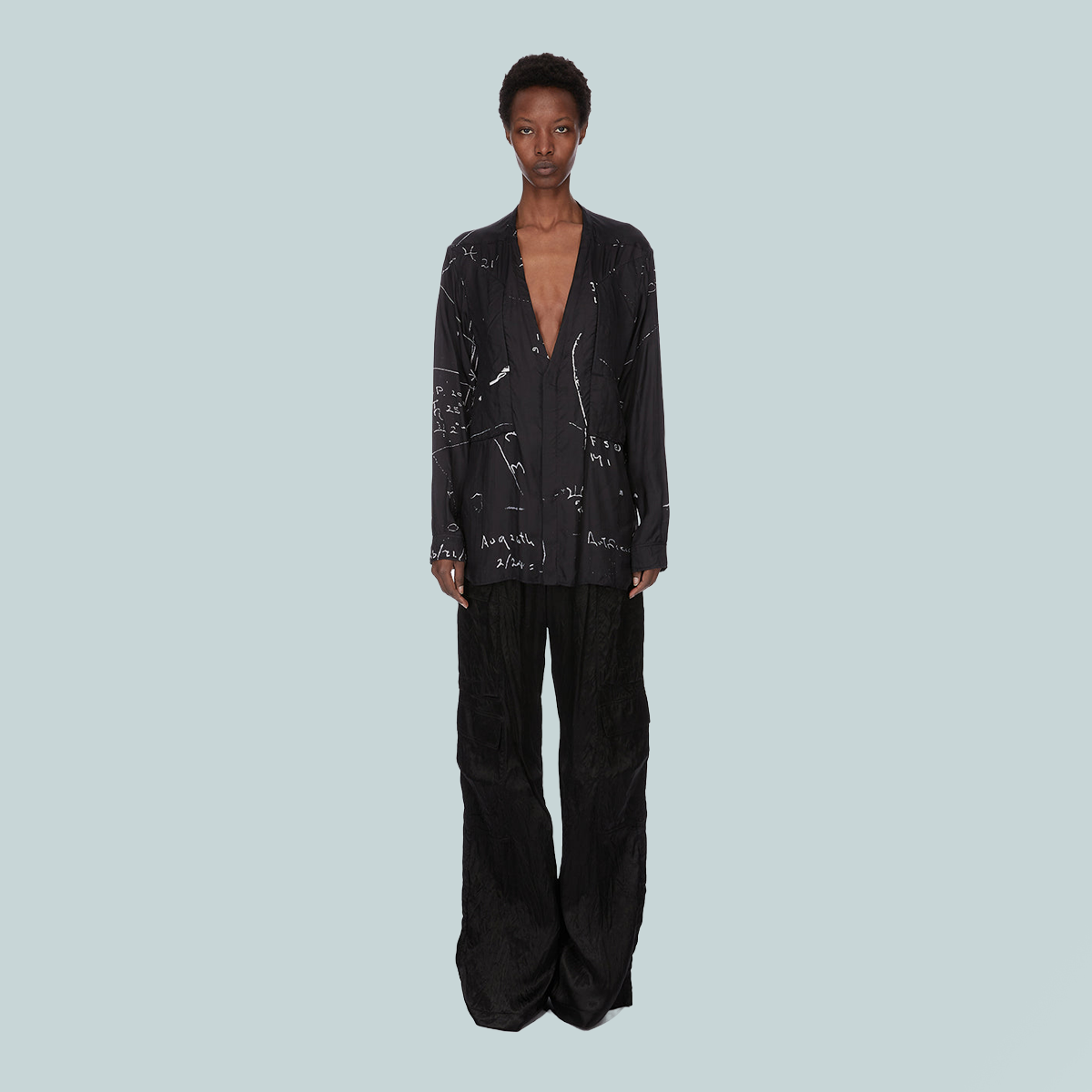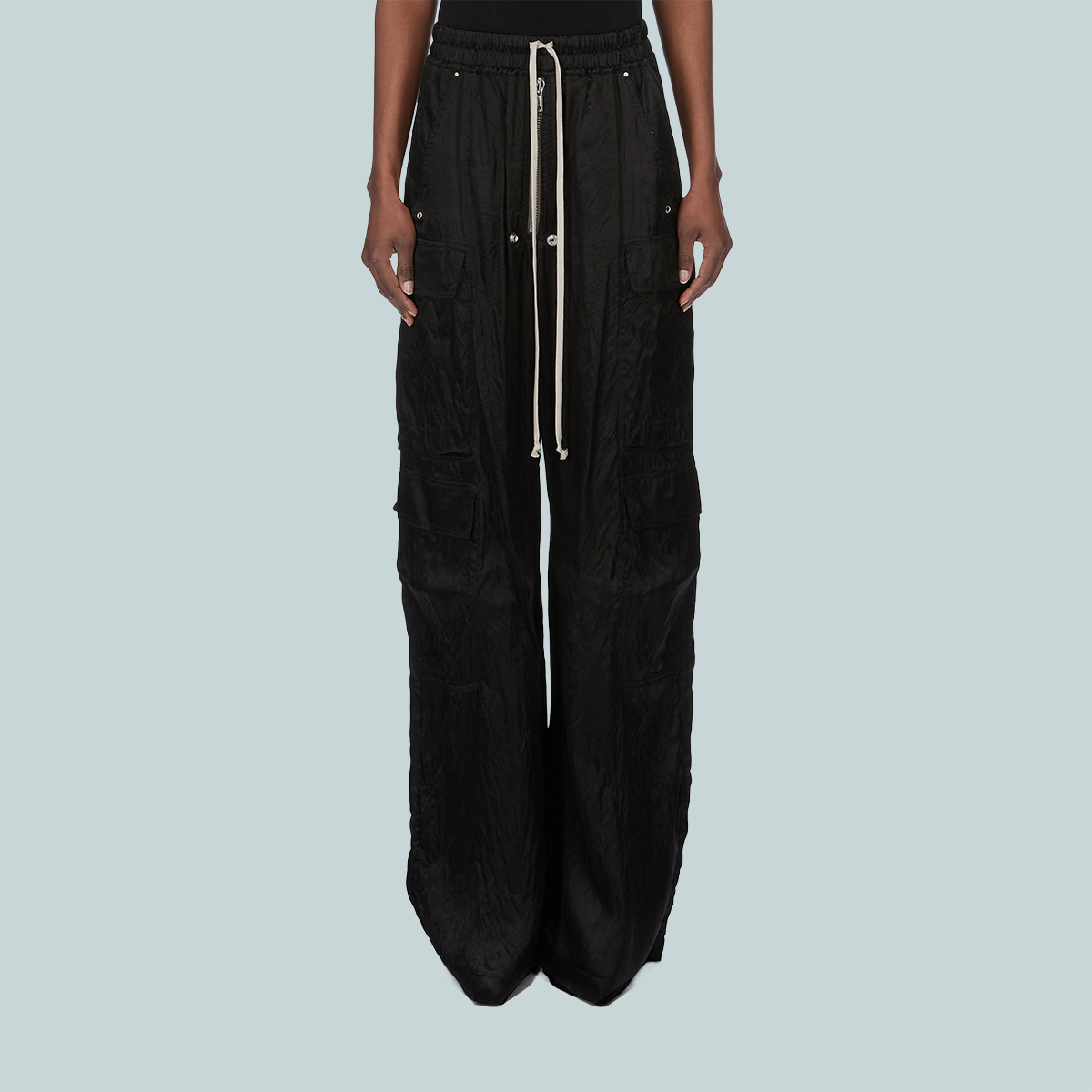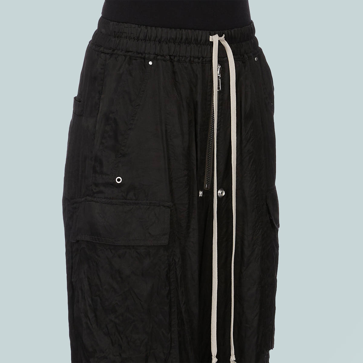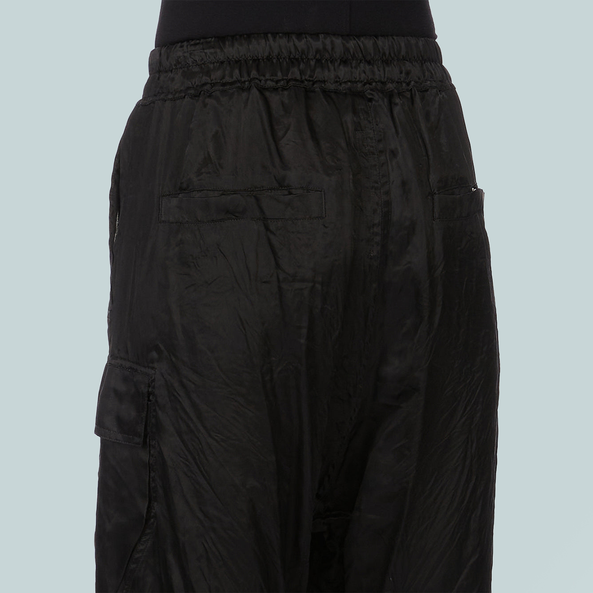 Rick Owens ss26 temple cargobelas in black cupro satin