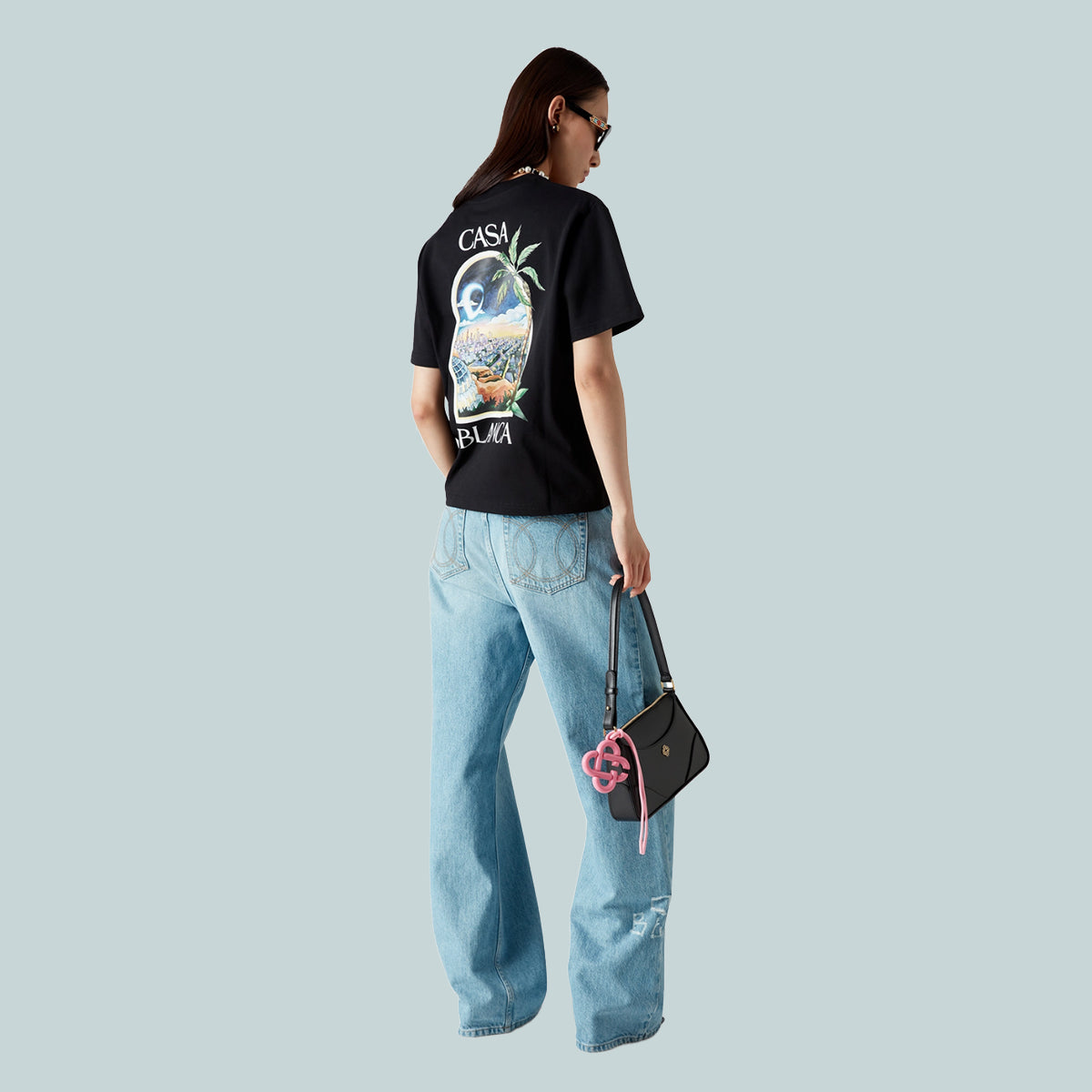 The graffiti distressed denim jeans are a straight-leg design crafted from cotton fabric and feature the signature stacked logo in a graffiti-style text etched into the fabric. Completed with gold-plated hardware, belt loops, front and back pockets, a branded leather patch and zip closure.
