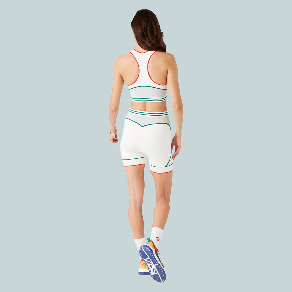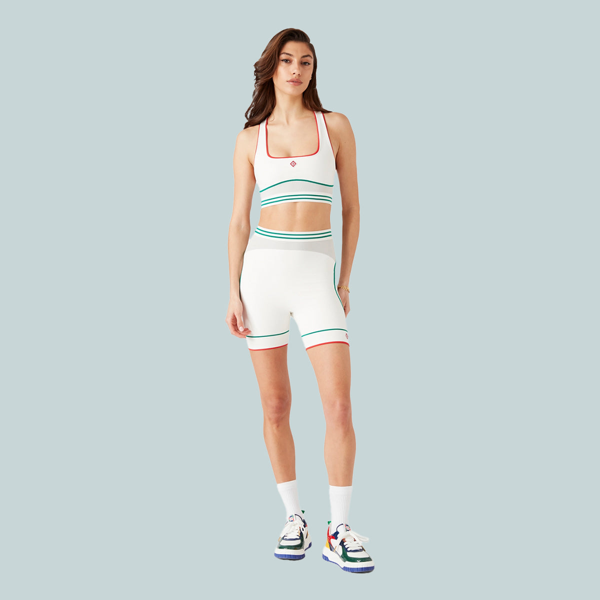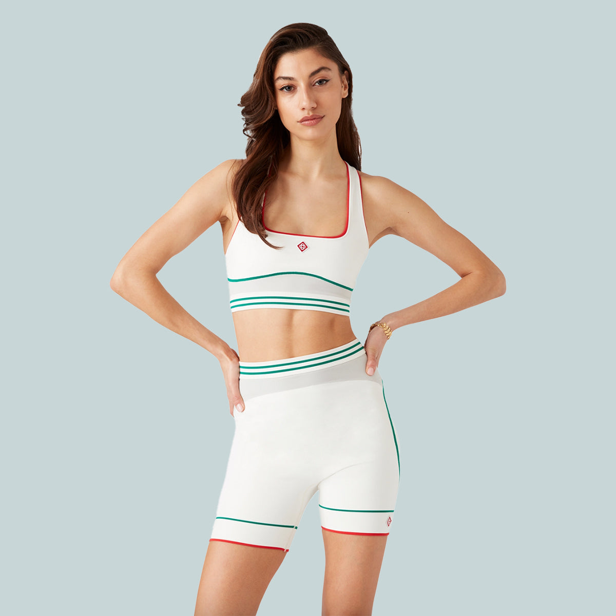 The seamless sports bra is a sleeveless sportswear-inspired design featuring the house's signature diamond monogram at its centre. This piece is crafted from a seamless rib stretch fabric featuring an elasticated band, completed with straps and a scoop neck.
