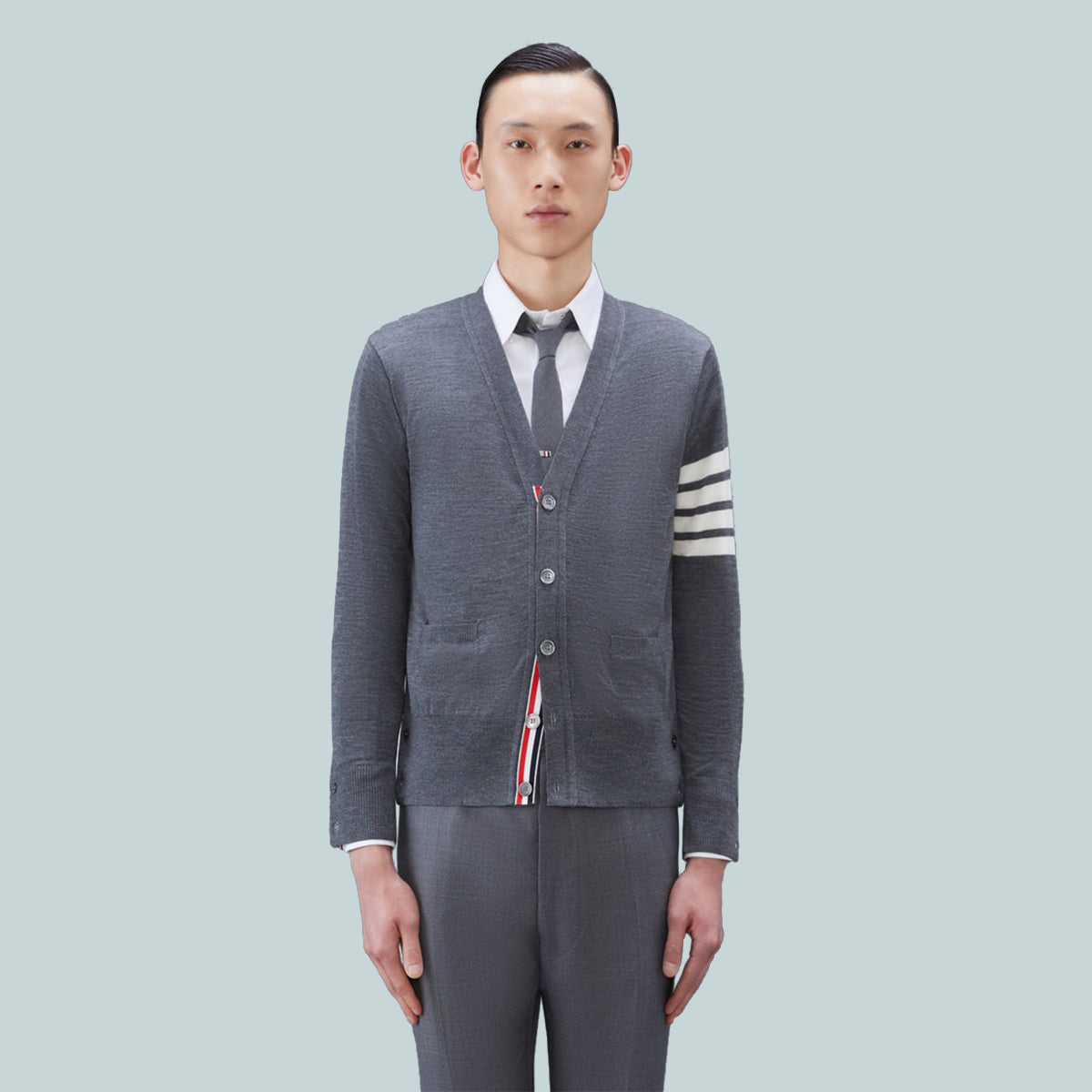 Wool Classic 4-Bar V-Neck Cardigan Grey