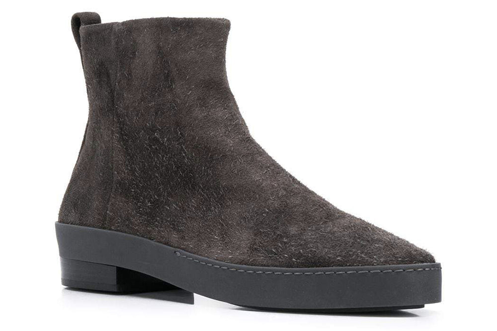 Created using distressed Italian suede, the Fear of God's Sante Fe Chelsea Boots feature a textured dark grey outer atop a rubber midsole with a contrasting wooden hell, finished with a rear pull tab and inner zip.